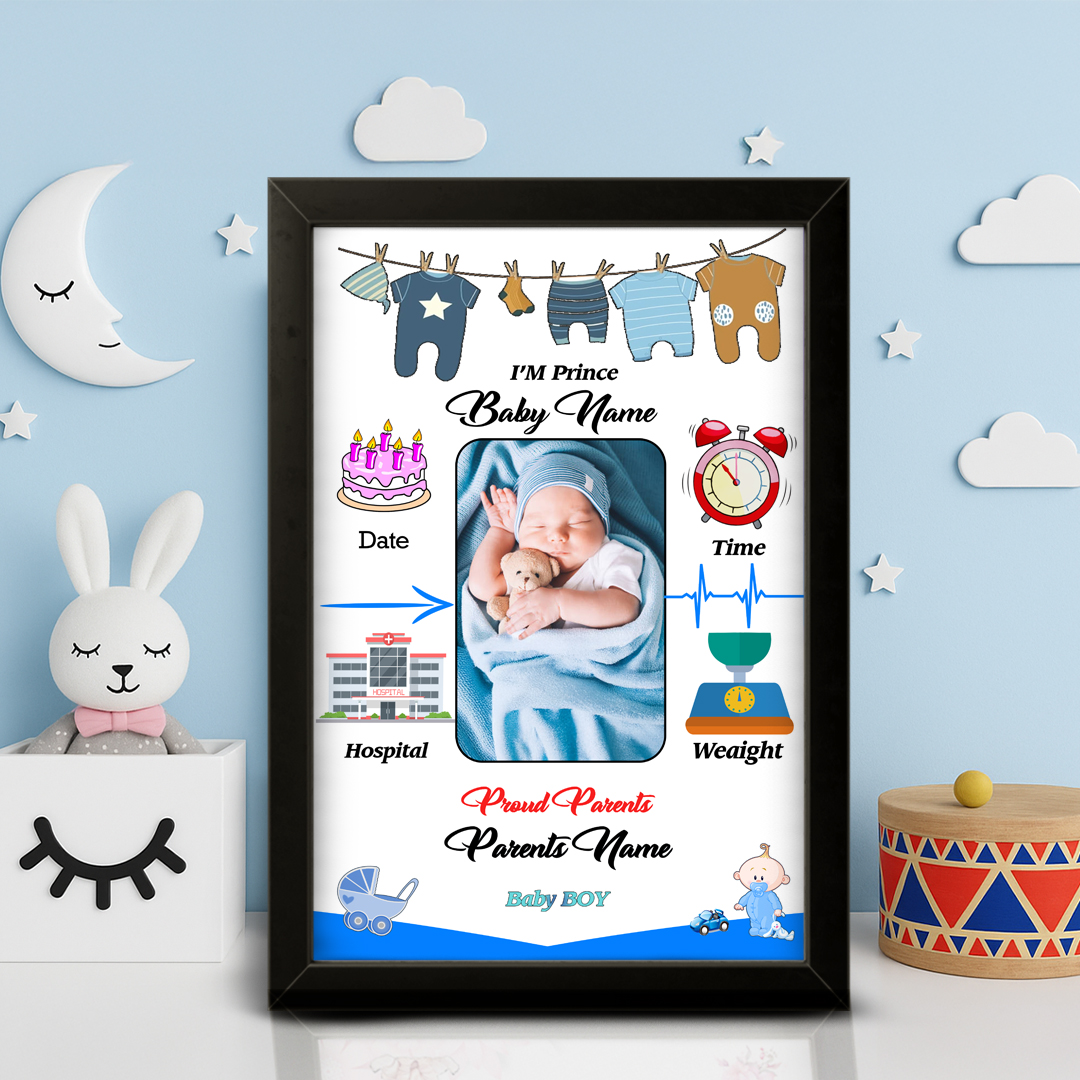 Celebrate the joyful arrival of your little one with our Little Prince Arrival Frame. This custom baby collage frame is perfect for nursery décor or as a treasured keepsake to preserve those first precious moments. Thoughtfully designed to highlight your baby’s sweetest milestones, it creates a timeless reminder of their early years.